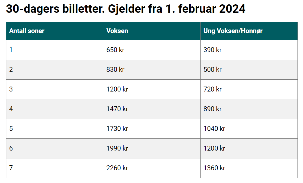 Gir ubegrenset antall turer innenfor valgte soner i 30 dager. Tilgjengelig i Entur-appen eller på Innlandskort.