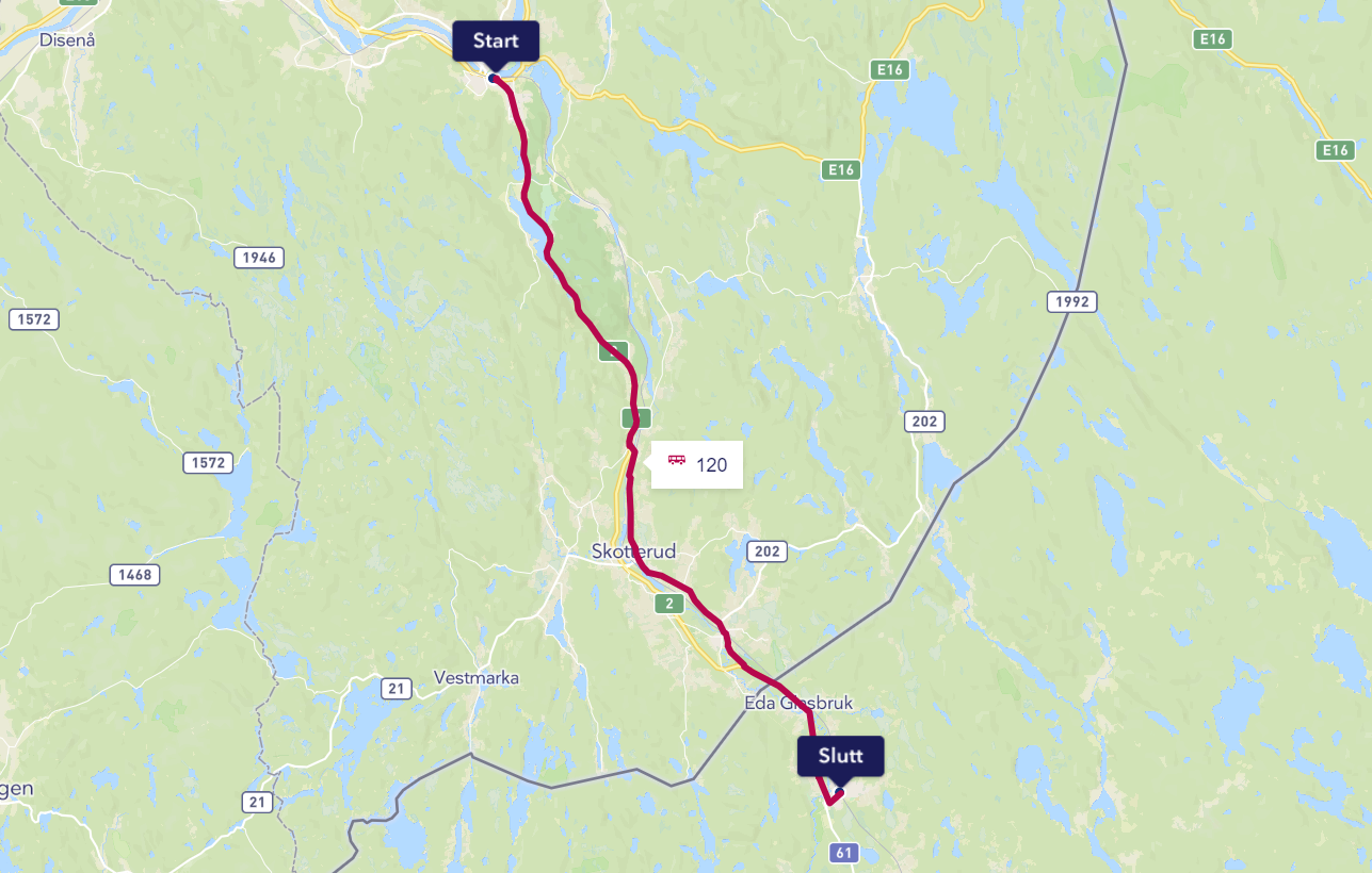 Kart Buss Bussruten Kongsvinger – Charlottenberg Linje 120