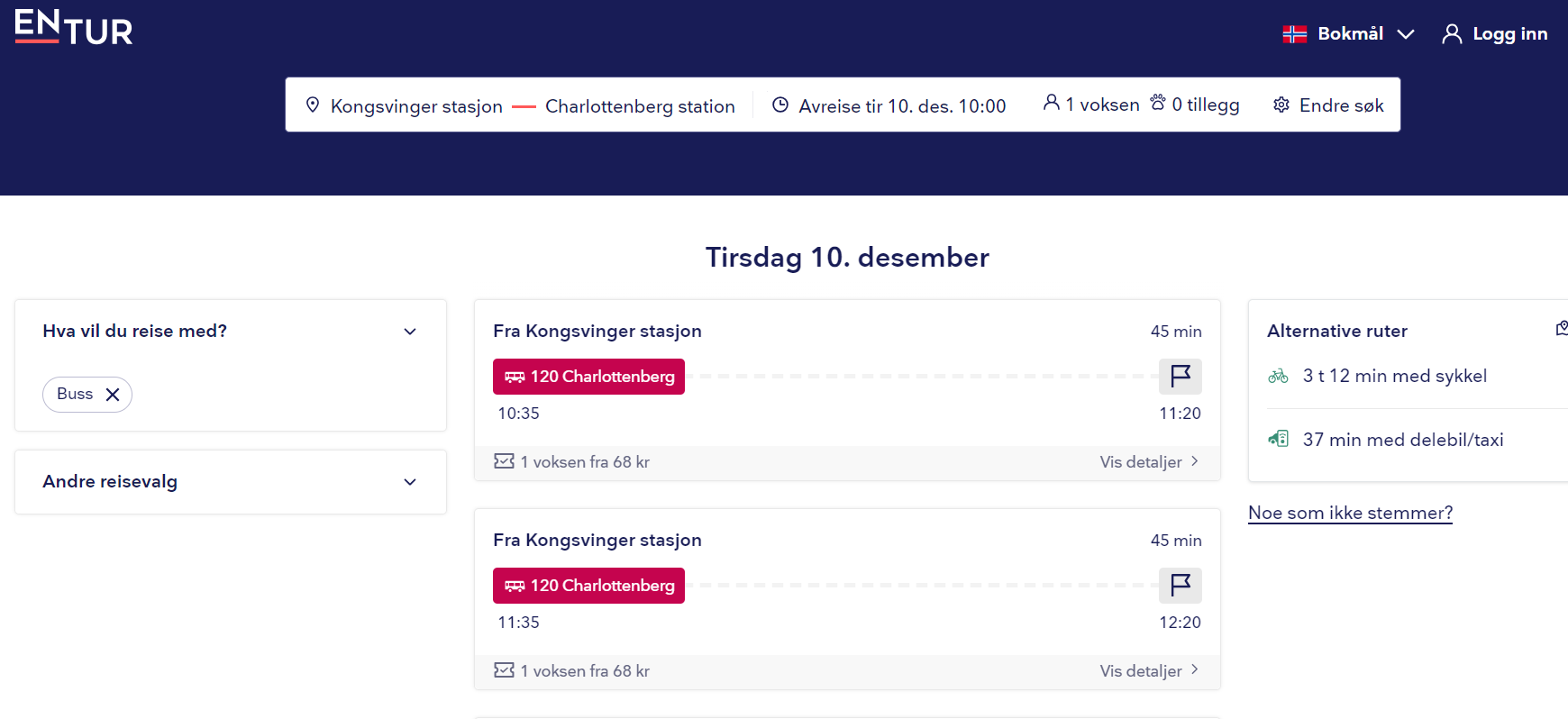 Reiseplanlegger: Bruk dette praktiske verktøyet til å finne og følge busser i sanntid. Med Entur reiseplanlegger kan du gjøre reisen enklere og mer komfortabel. Skriv inn ditt avgangs- og ankomststed, velg dato, klokkeslett og om du ønsker en énveisreise eller tur-retur, og få oppdatert informasjon med en gang.