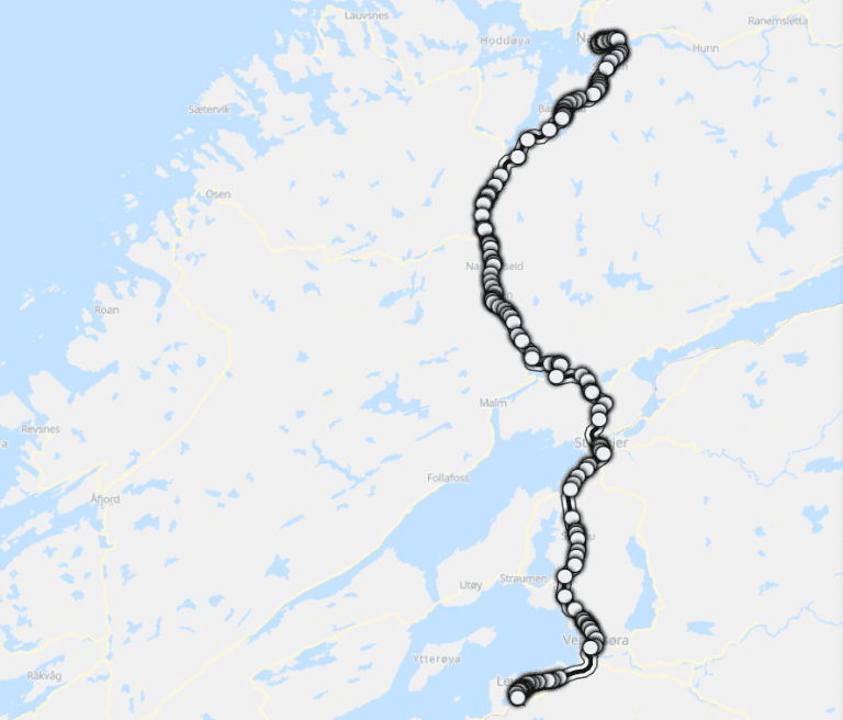 Du kan også se et detaljert kart som viser hele ruten, slik at du enkelt kan visualisere reisen din mellom de ulike stoppestedene. Dette gir deg en oversikt over både avgangssteder og ankomstpunkter, og hjelper deg med å planlegge turen på en effektiv måte.