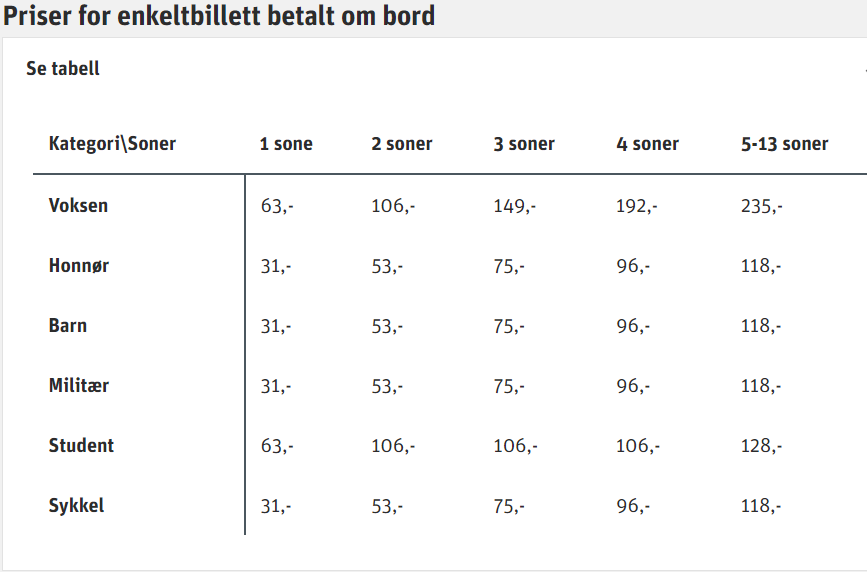 Derimot, hvis du kun reiser fra Steinkjer til Levanger, som ligger innenfor én sone, vil prisen på en enkeltbillett være lavere. I dette tilfellet vil billetten for en voksen koste 43 NOK, mens for et barn vil prisen være 22 NOK.